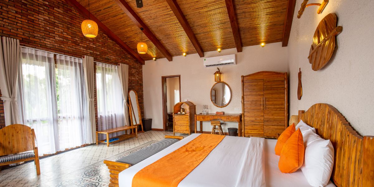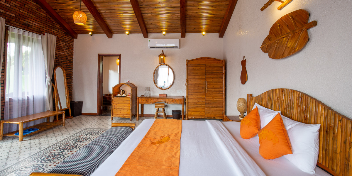 Một sự lựa chọn tuyệt vời tại Can Tho Ecolodge với hai phòng ngủ thông nhau, đủ rộng cho cả gia đình. Hãy nghỉ ngơi và làm mới cơ thể ở thiên đường mộc mạc gần gũi thiên nhiên này. Thoát khỏi sự lo âu với không gian rộng lớn bao quanh Ecolodge cùng với gia đình của bạn, cảm nhận sự thoáng mát gió miền Tây